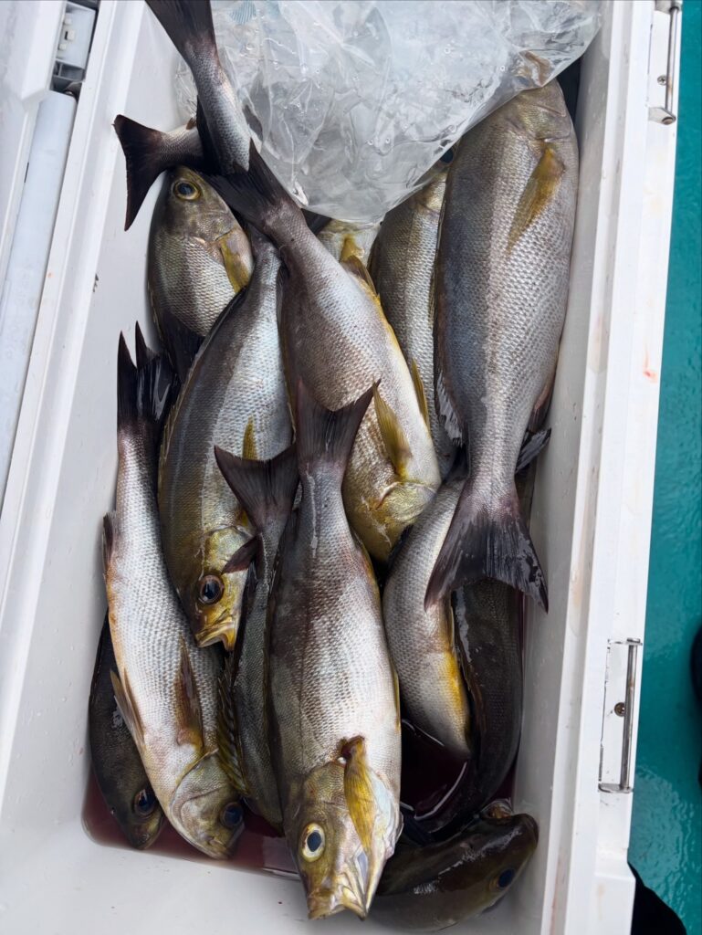 周りも当然イサキもバカスカ釣ってるんじゃが、俺のバカスカ具合が常軌を逸しておる。もうヒットすればイサキ、バラすのもイサキ、コイツの引き完全に覚えたわ。確かにイサキは釣るの楽しいし美味いし嬉しいんですよ。