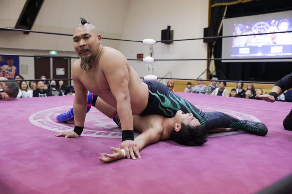 タッグマッチで紫焔タッグチャンピオンのゴテツが負けた。