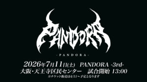 2026.9.19 おかやま未来ホール大会 2026 1/02 日程 2026年9月19日(土)開始 13時00分 会場 おかやま未来ホールイオンモール岡山JR岡山駅より徒歩約5分〒700-0907 岡山市北区下石井1丁目2番1号 料金 詳細は決定次第発表 試合予定 よかったらシェアしてね! URLをコピーしました! URLをコピーしました! 2026.7.11 PANDORA -3rd- 関連記事 2026.1.25 平野区民ホール大会 2026-01-11 2026.2.23 生野区民センター大会 2026-01-09 2026.3.21 旗揚げ16周年記念 アゼリア大正大会 2026-01-08 2026.4.11 PANDORA -2nd- 2026-01-04 2026.7.11 PANDORA -3rd- 2026-01-03